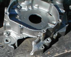 Case damage where counter balancer was hit and knocked forward by the untimed crank shaft. Photo courtesy of Jesse Keinz of Keintech Engineering.