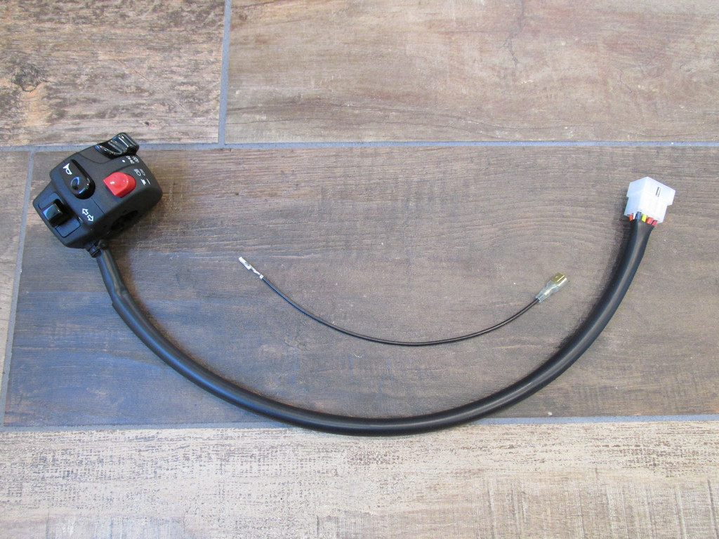 Multifunction handlebar switch pre-wired for Moto Guzzi Tonti models After 10 years of building Moto Guzzi harnesses and supporting my customers, I have learned that people experience the most frustration and challenges when attempting to wire the left handlebar switch (by far). To help alleviate these issues, I am now offering this brand new switch with period appearance. The switch features a metal body and fits 22 mm (7⁄8 inch) handlebars. It is pre-wired so that you can mount it on your handlebar and plug in the wires quickly and easily. I chose this switch because of its functionality, size, and appearance. While it does not boast all of the features and functions of a modern switch, it is a good basic switch that is appropriate to the Tonti frames. I use a switch like this on my personal Ambassador and I find it easy to use and my thumb operates all of the controls with ease. As with all handlebar switches, I strongly recommend the use of relays for the headlight circuit. I have an excellent relay solution available for purchase.